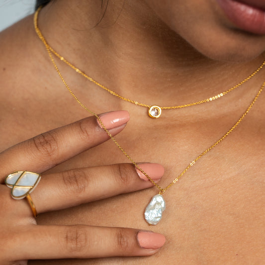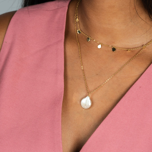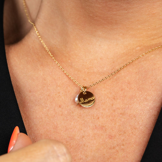 Collar Dije "Mama" y Perla Barroca de Baño de Oro