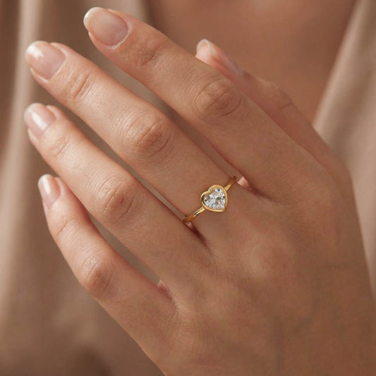 Anillo corazón con circonita baño en oro