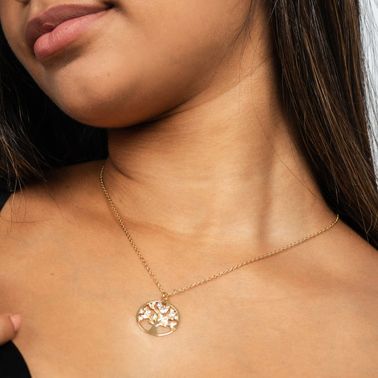 Collar árbol de la vida con circonitas baño en oro