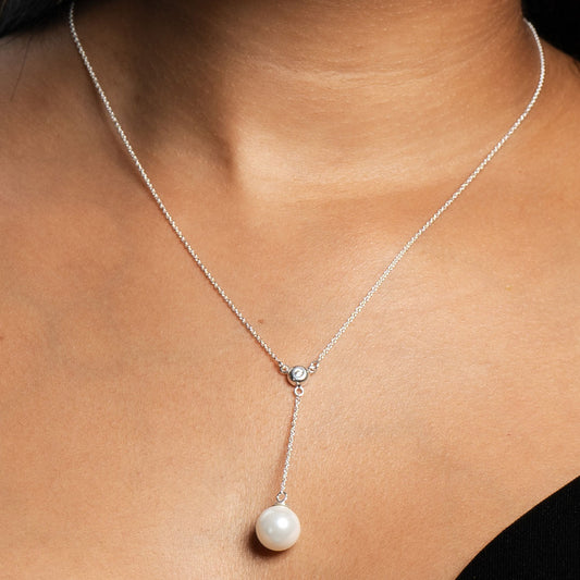 Collar Lariat Perla y Circonita - Plata de Ley 925