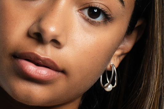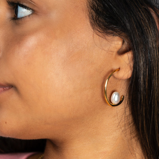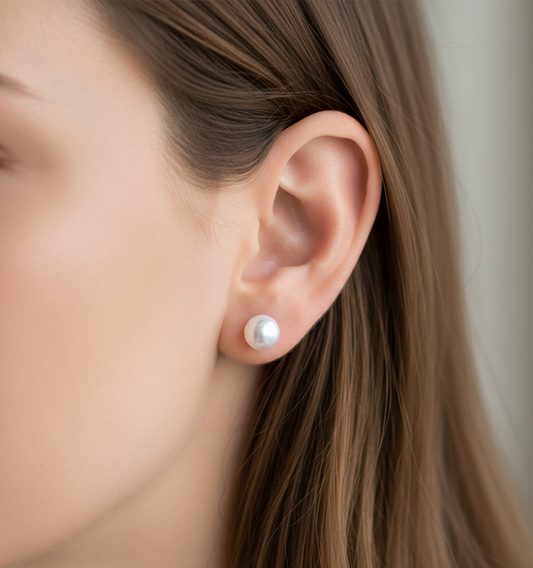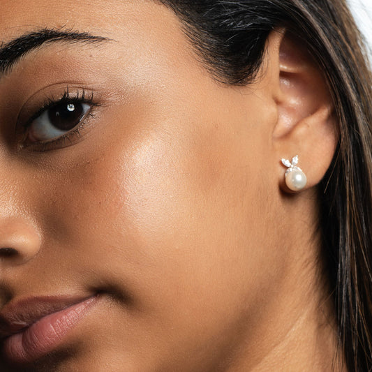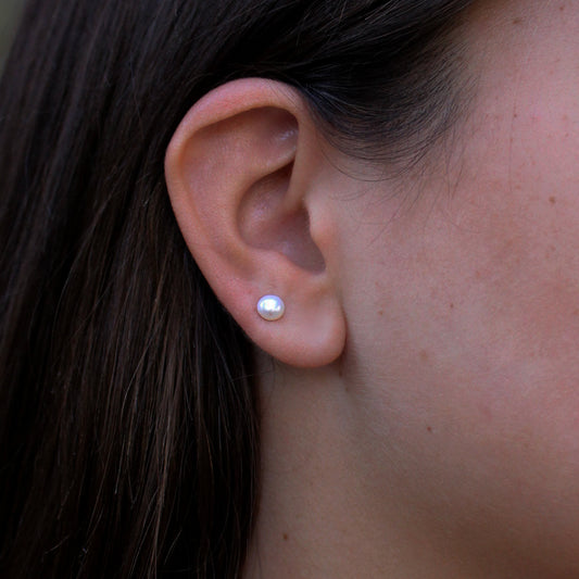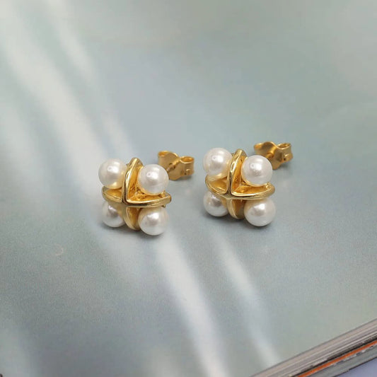 Pendientes de Botón Cuadrados con 4 Perlas Blancas baño en oro