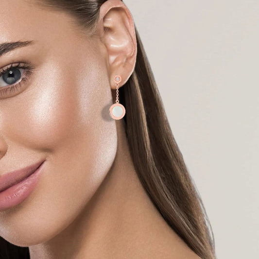 Pendientes Largos de Cadena en Oro Rosa con Madreperla y Circonita