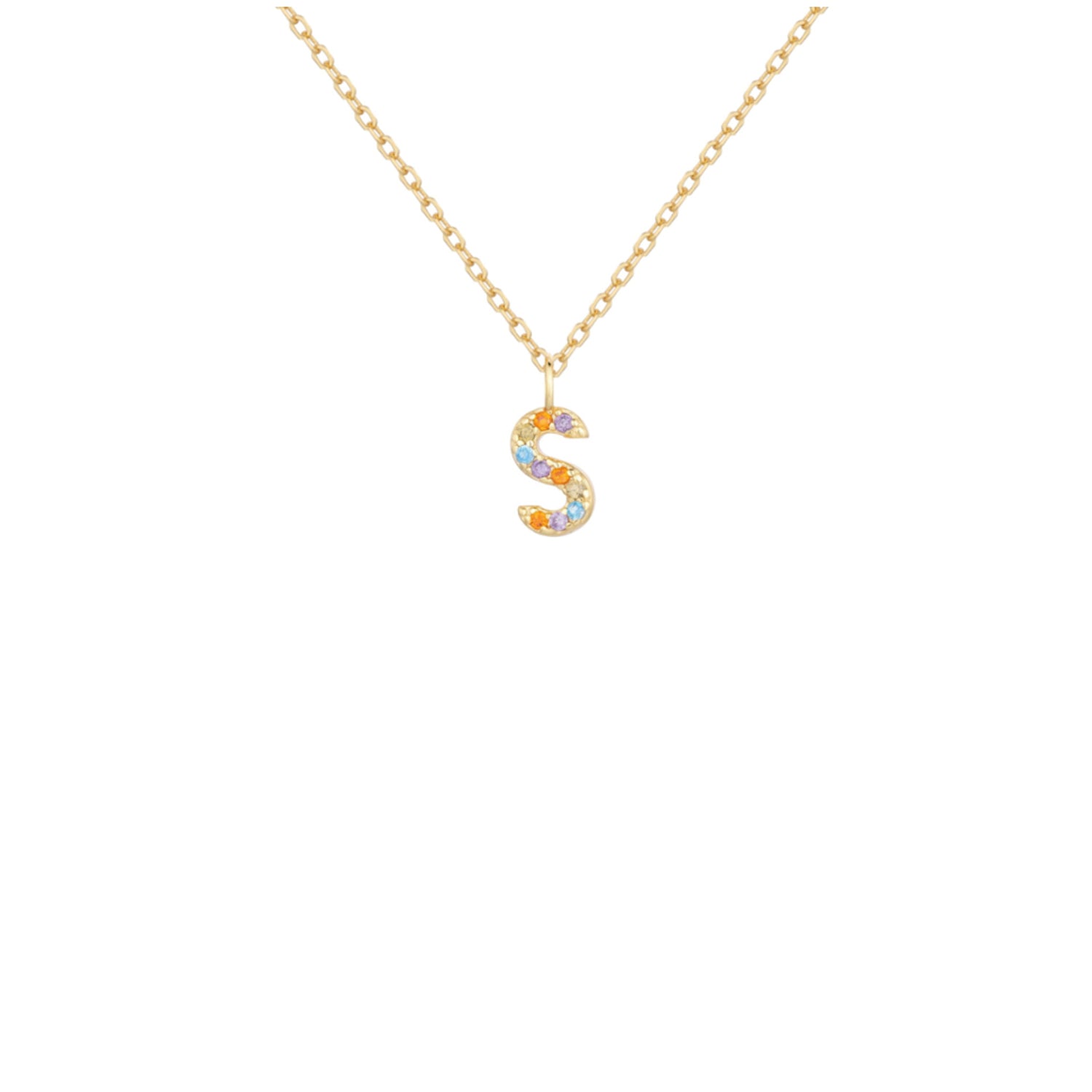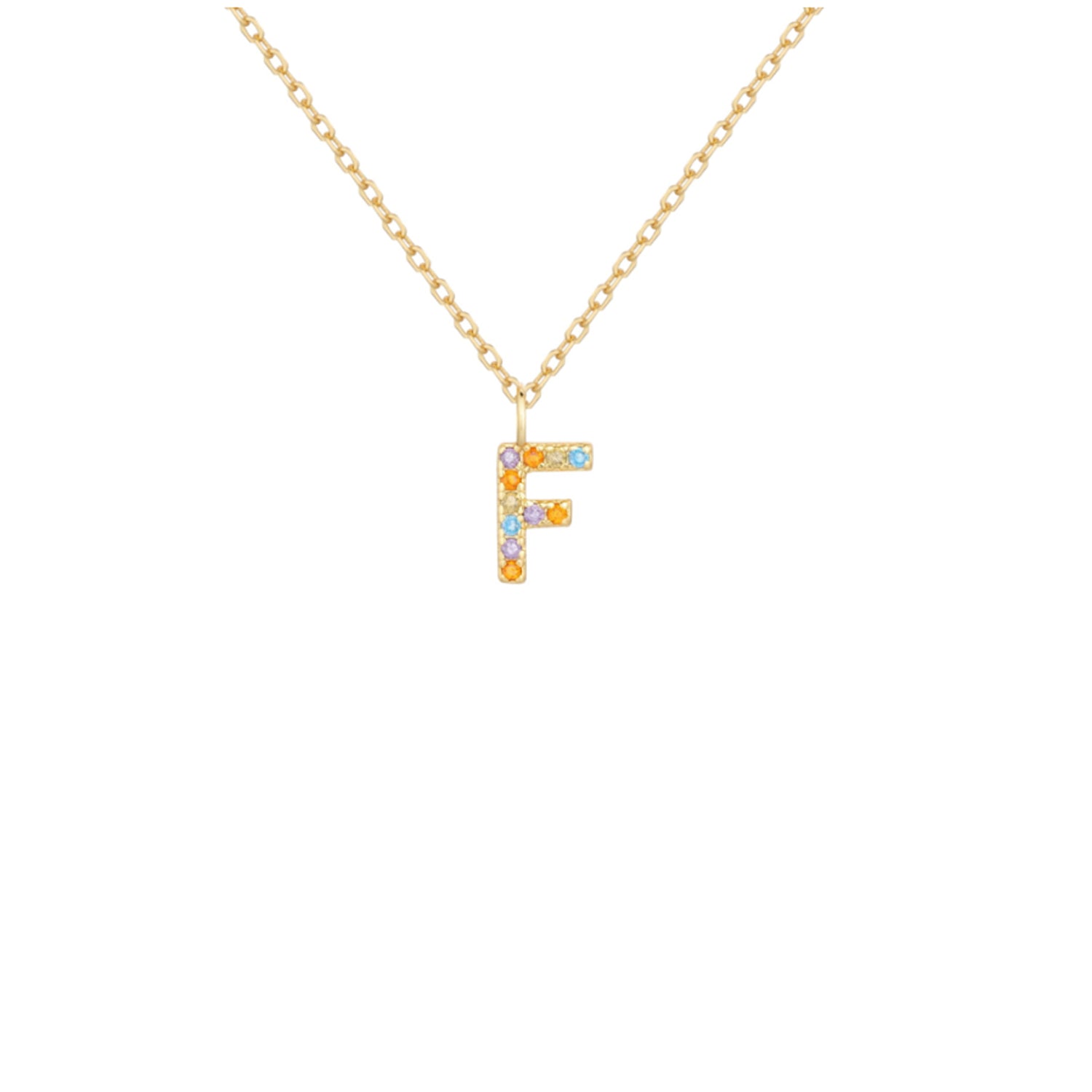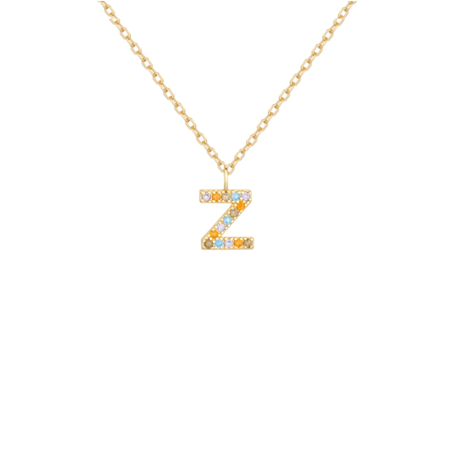 Collar de Plata de Ley baño oro con inicial circonitas Letra