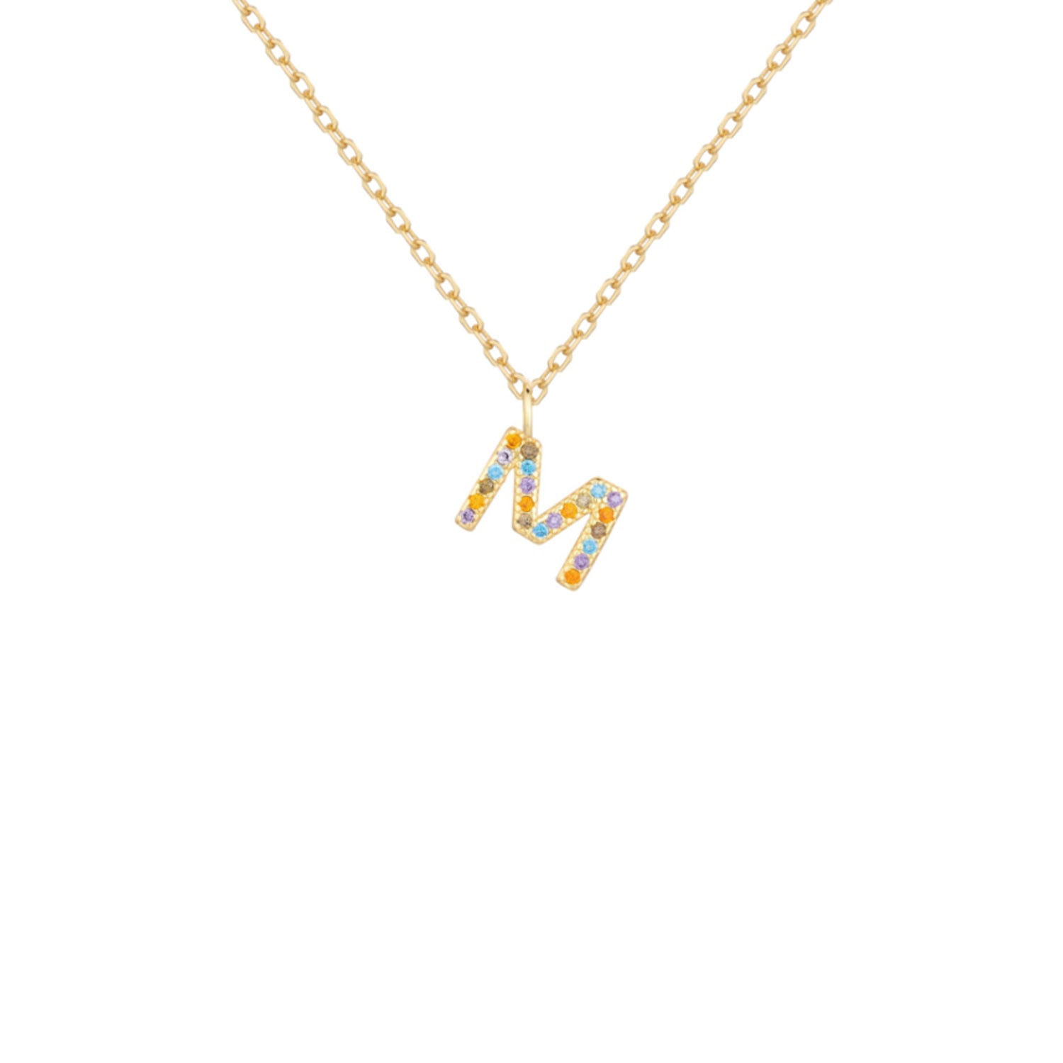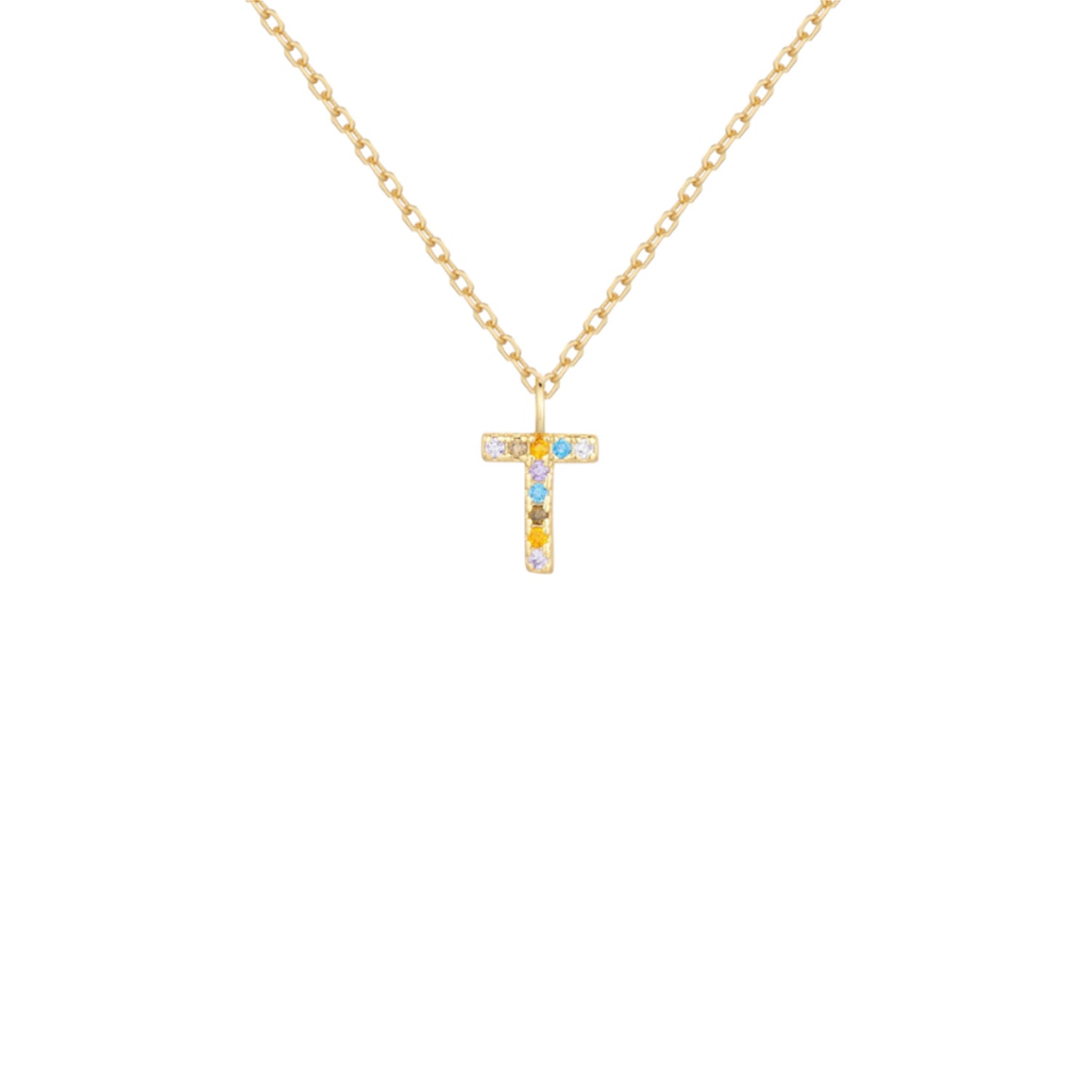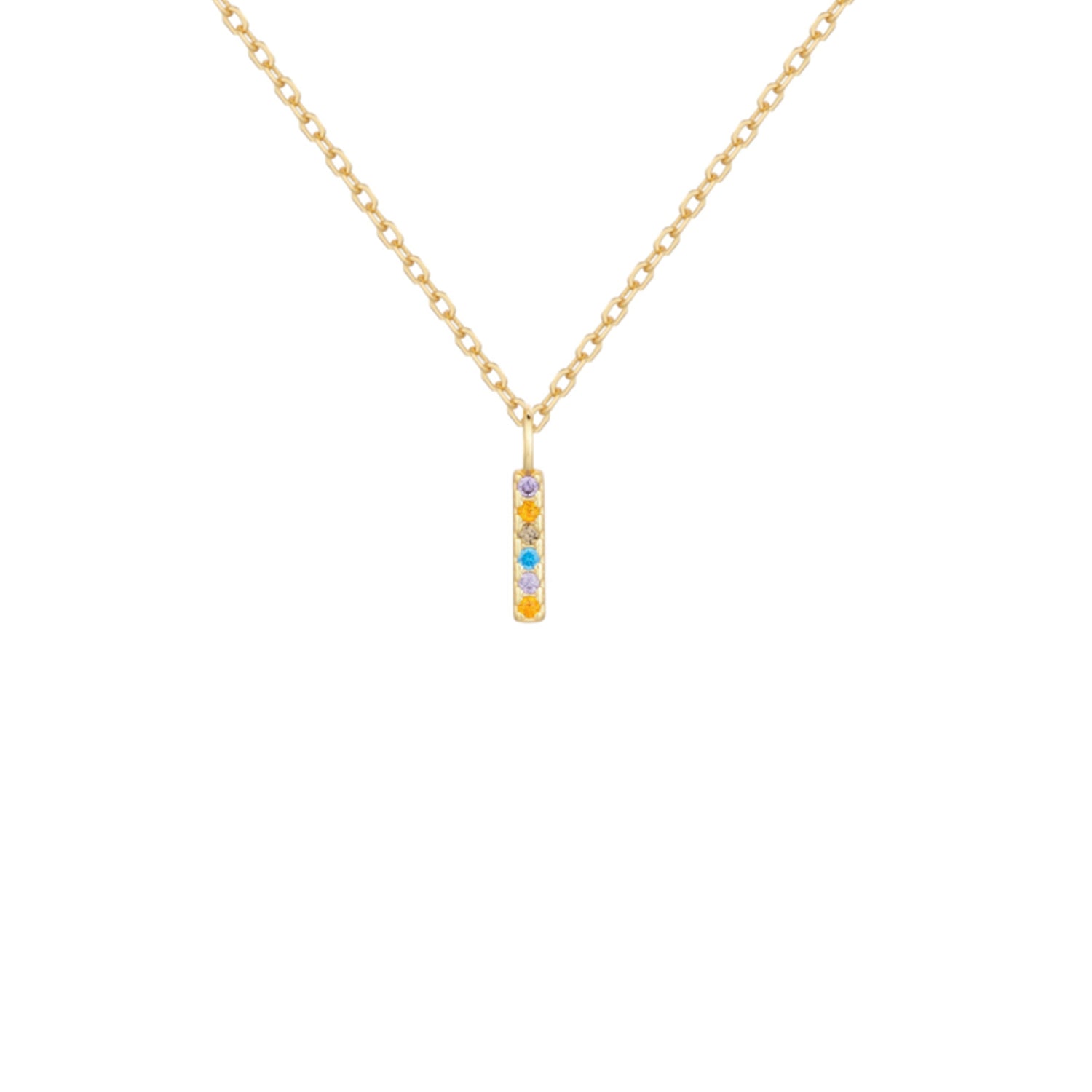 Este collar está elaborada en España con plata de ley 925 bañada en oro y circonitas multicolor, combinando calidad y diseño sofisticado.