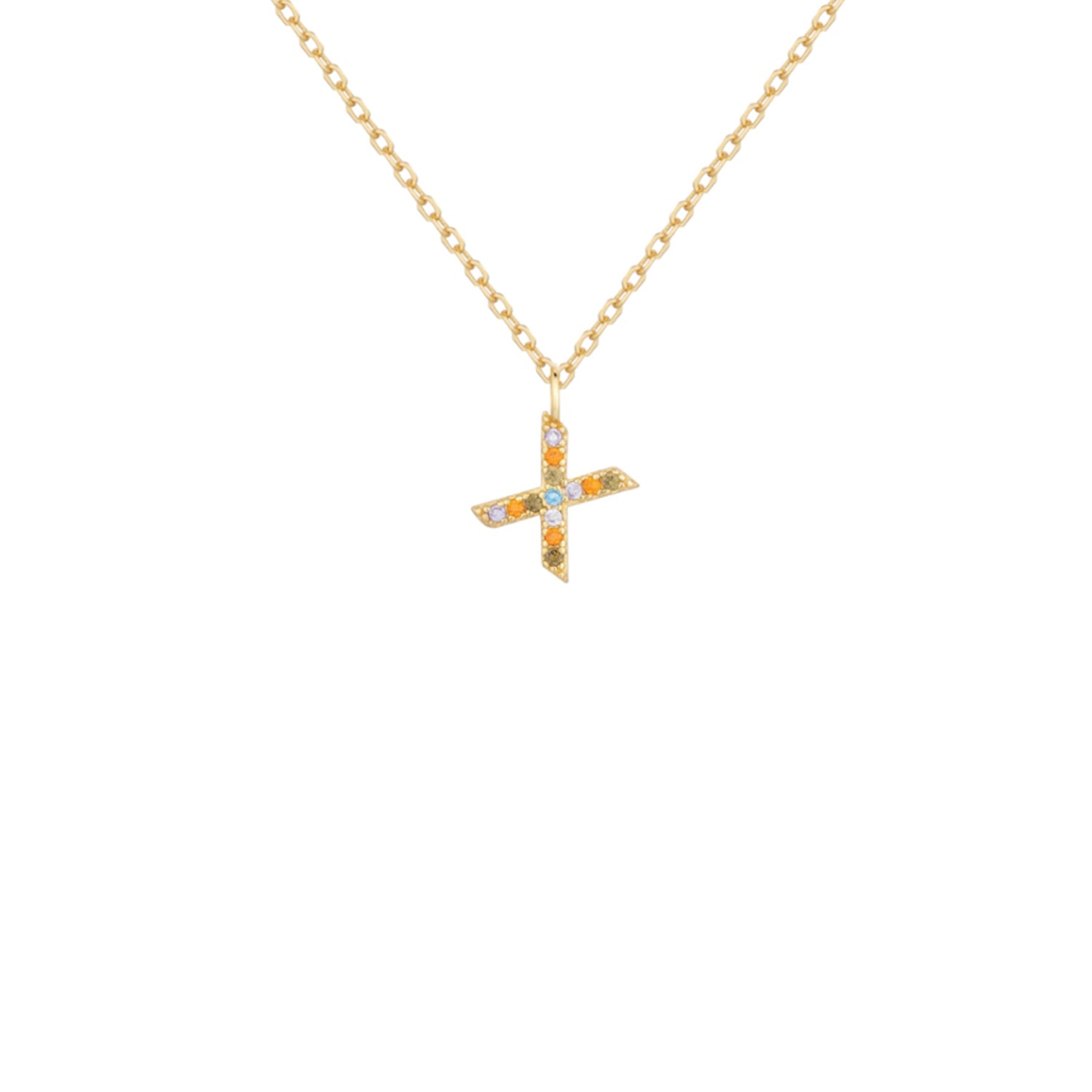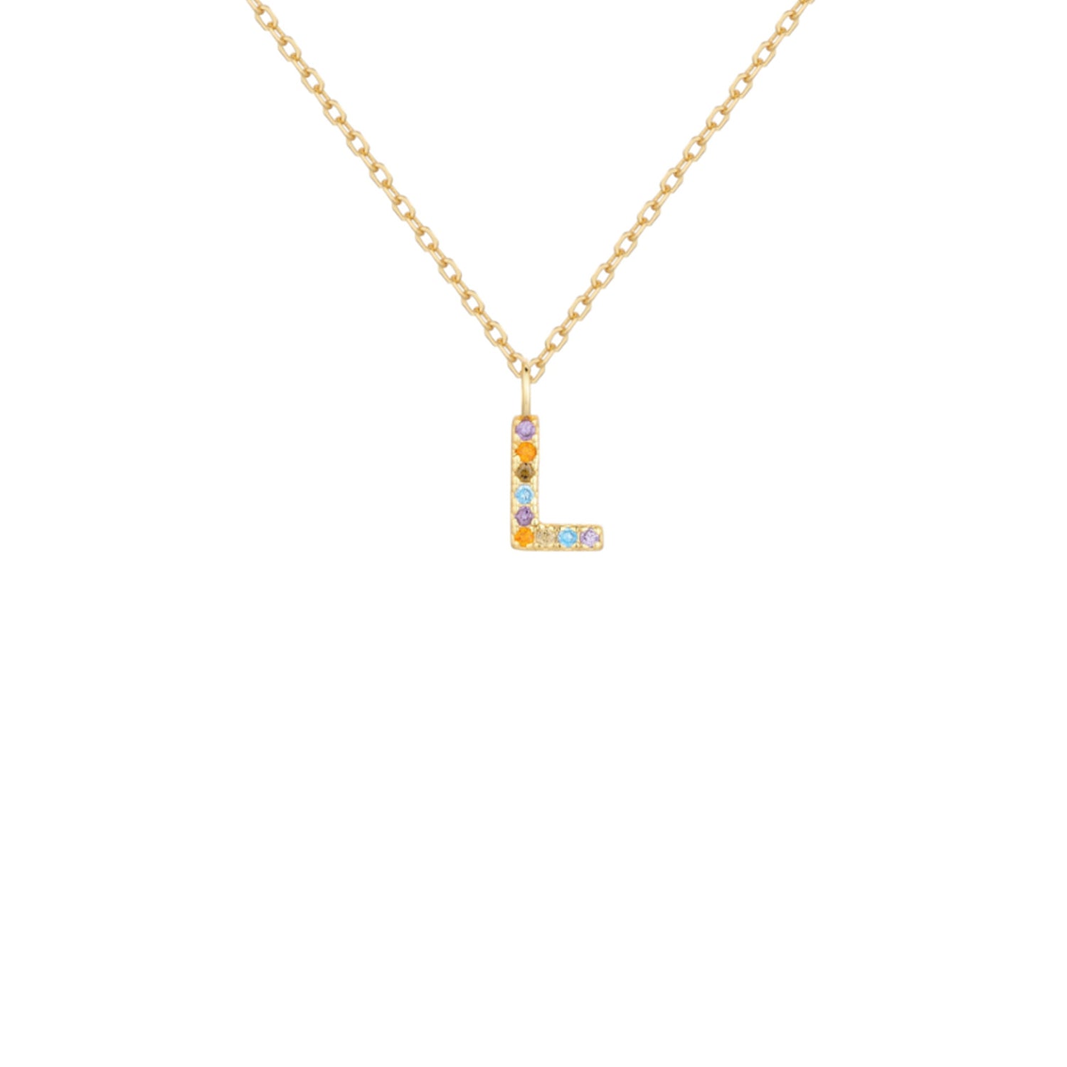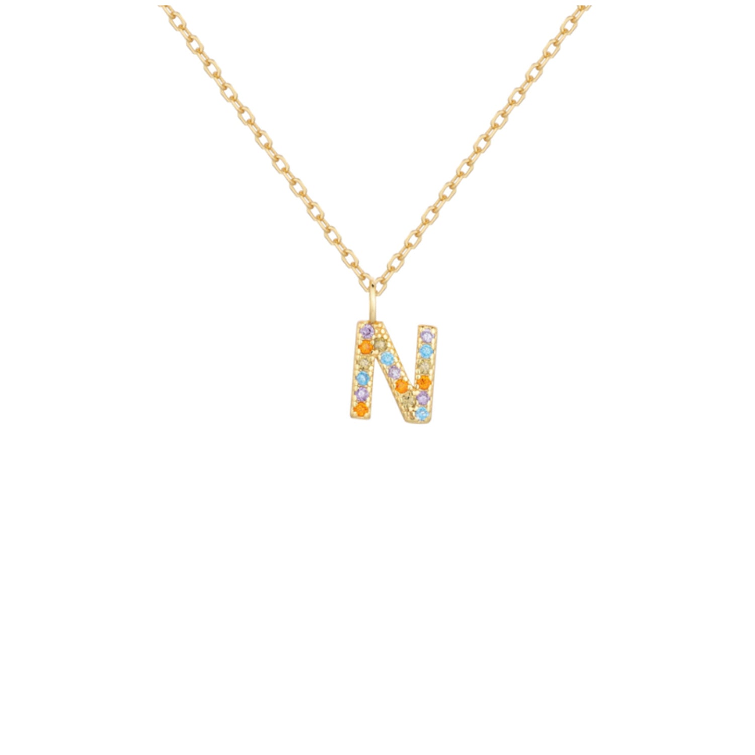 Este collar está elaborada en España con plata de ley 925 bañada en oro y circonitas multicolor, combinando calidad y diseño sofisticado.