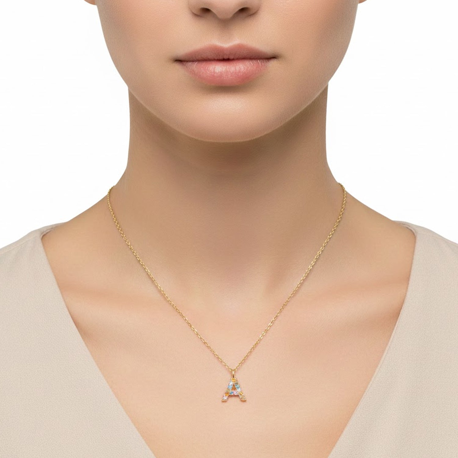 Collar de Plata de Ley baño oro con inicial circonitas Letra A