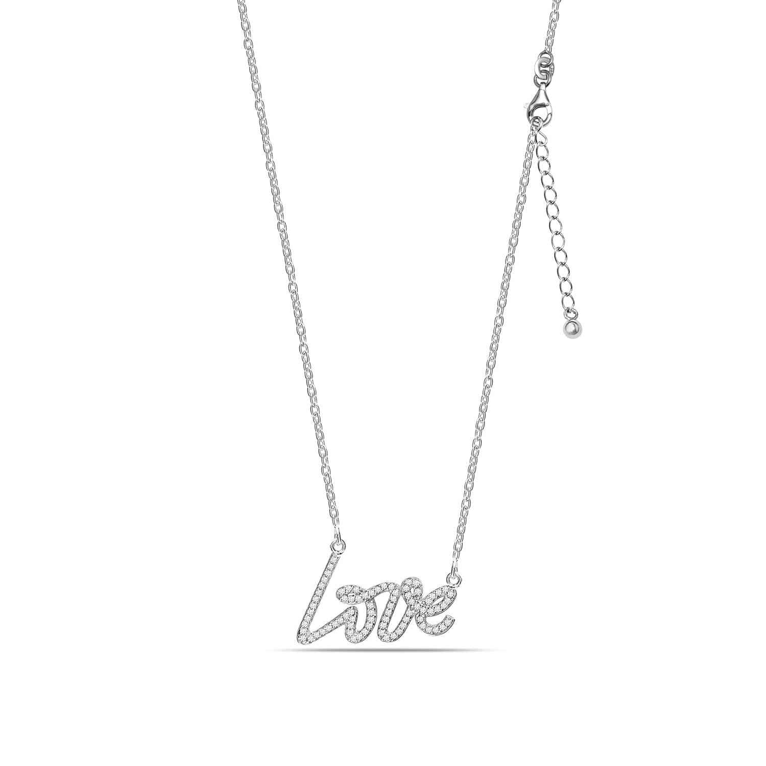 Un mensaje eterno, convertido en joya. Este delicado collar está elaborado en plata de ley 925 y presenta un colgante con la palabra love en elegante caligrafía, completamente engastado con circonitas que aportan brillo y romanticismo. Su cadena fina incluye extensión ajustable y cierre de mosquetón, para adaptarse cómodamente a tu estilo. Ideal como regalo con significado o como detalle personal que celebra el amor en todas sus formas.