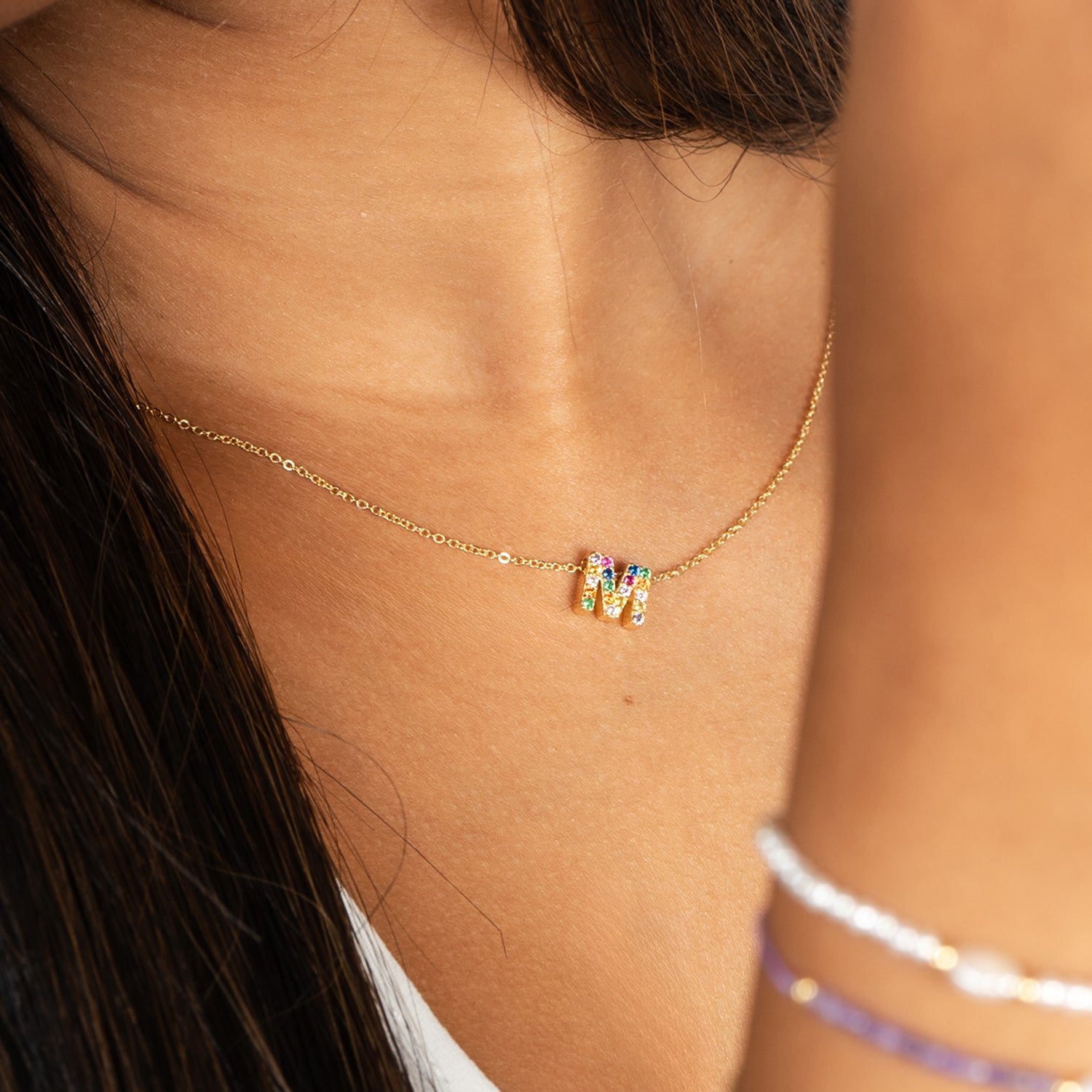 Este collar está elaborada en España con plata de ley 925 bañada en oro y circonitas multicolor, combinando calidad y diseño sofisticado.