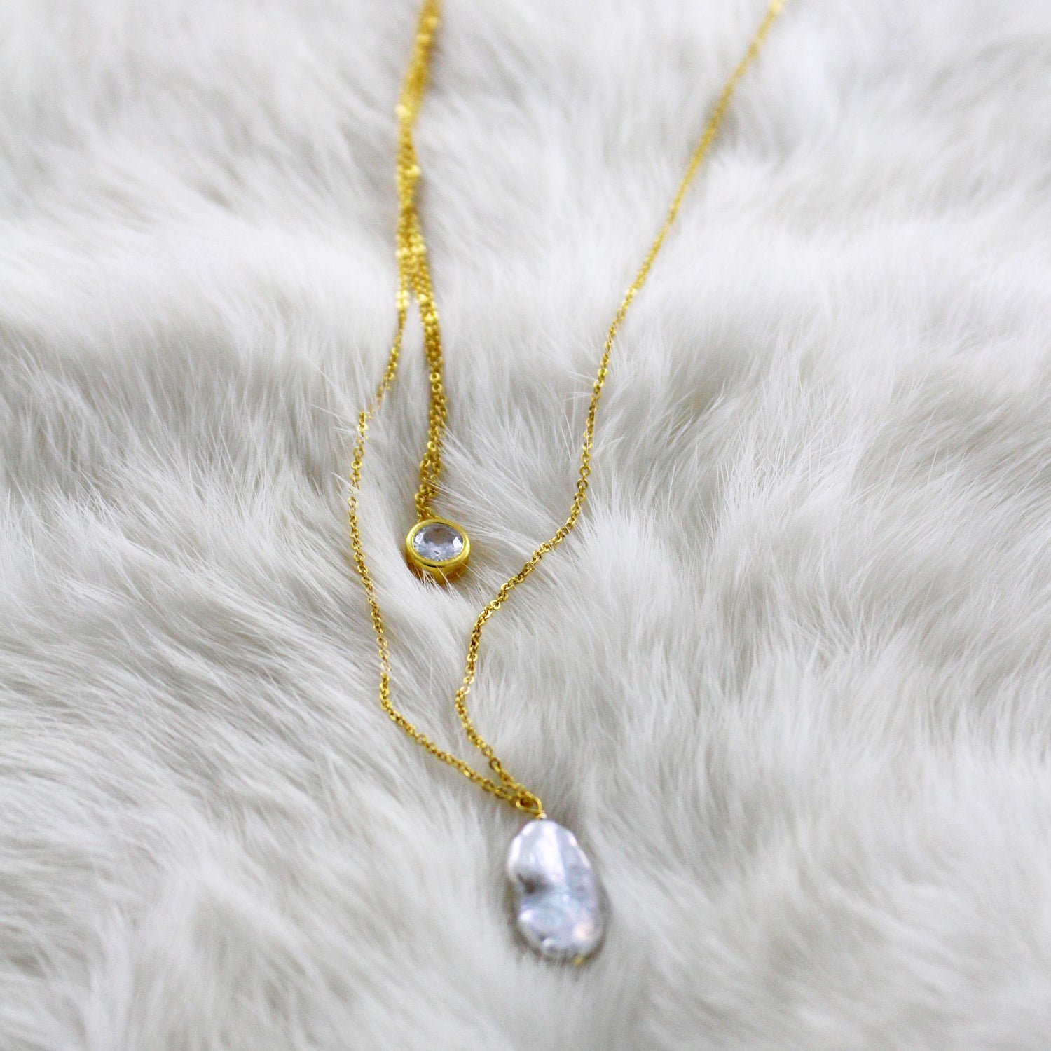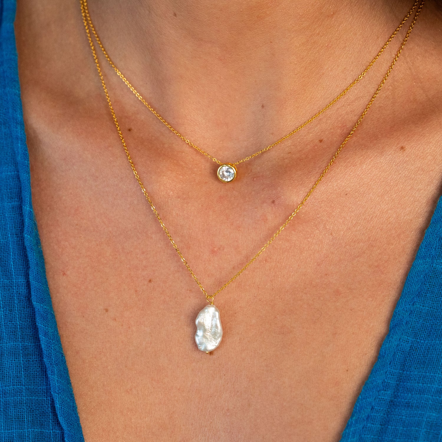 Gargantilla y collar de Plata de Ley con perla barroca alargada y una circonita