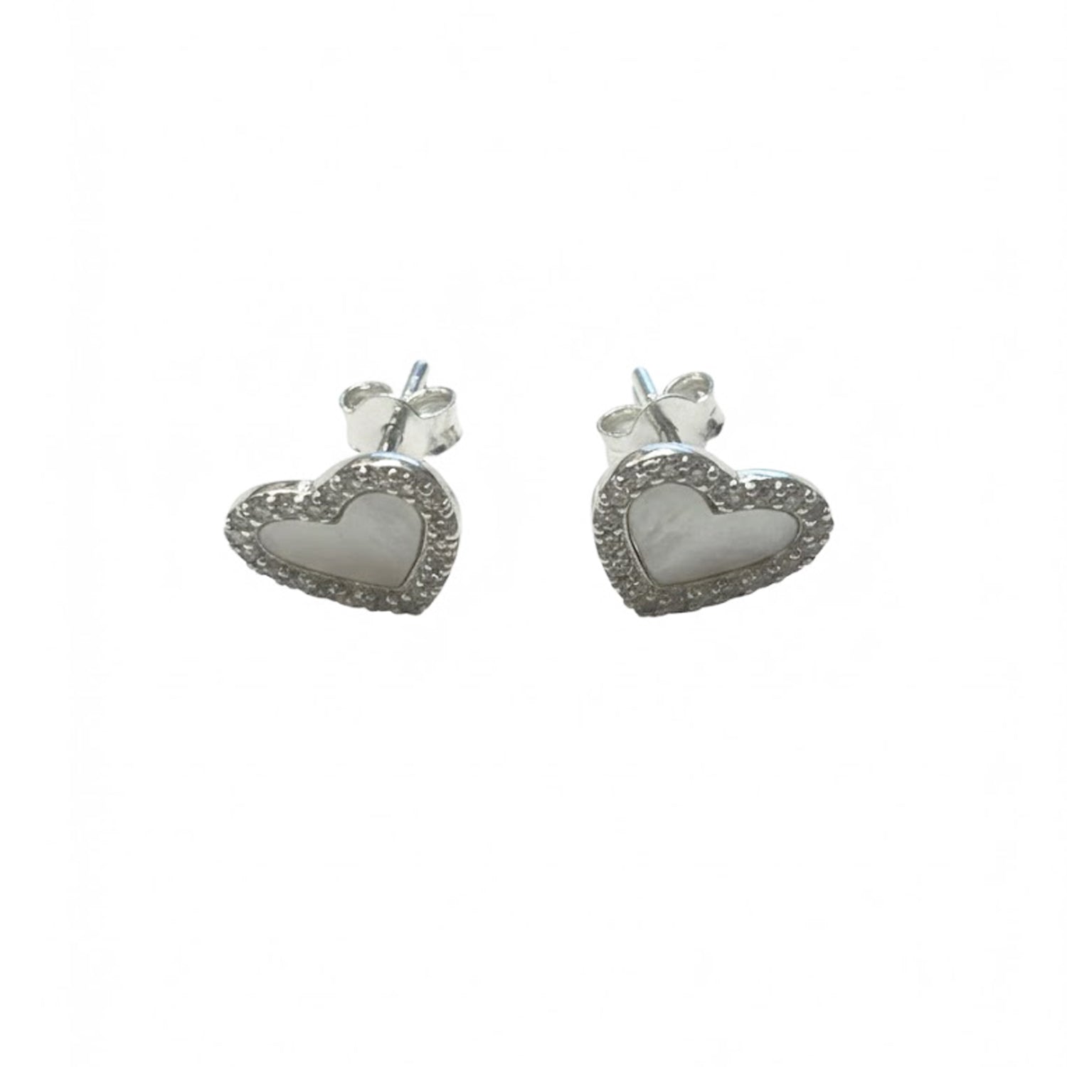 Pendientes de Corazón en Plata con Nácar y Circonitas